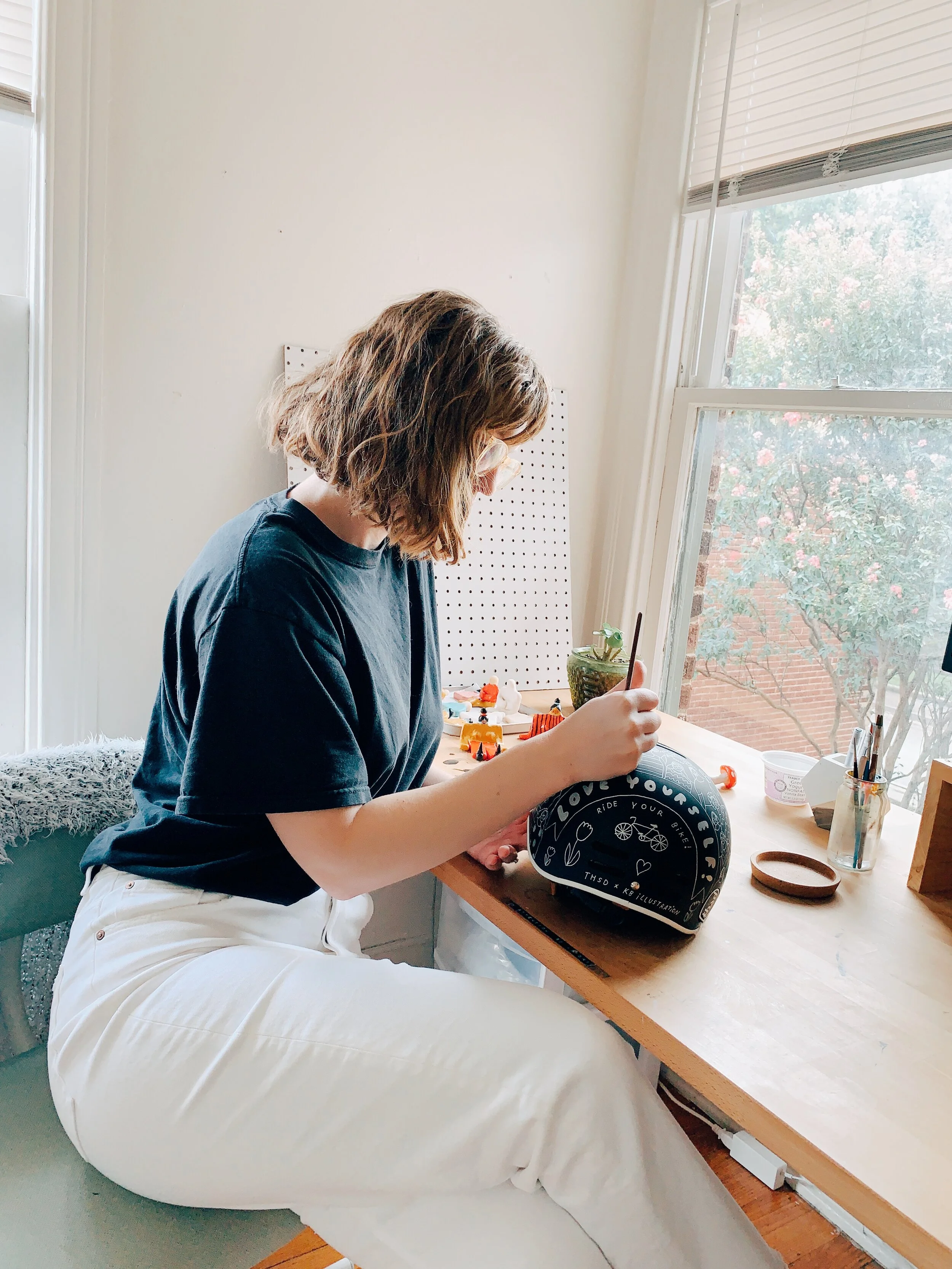Custom illustrated helmet for a giveaway partnering with Thousand Helmets.